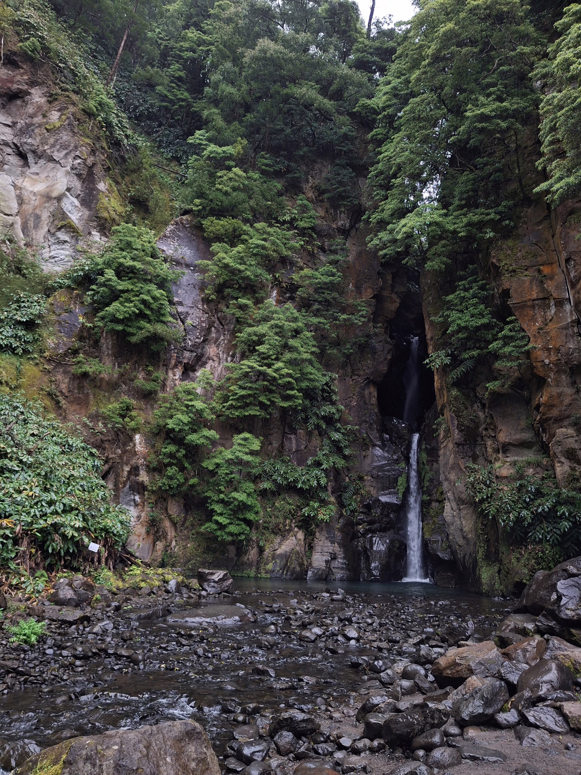 Pod vodopádem ústí do nově zbudované hydroelektrárny i vlastní potrubí a voda dál teče už volně korytem říčky až do Ribeira Grande. Místo ale zve k dalšímu tichému posezení a koučování.