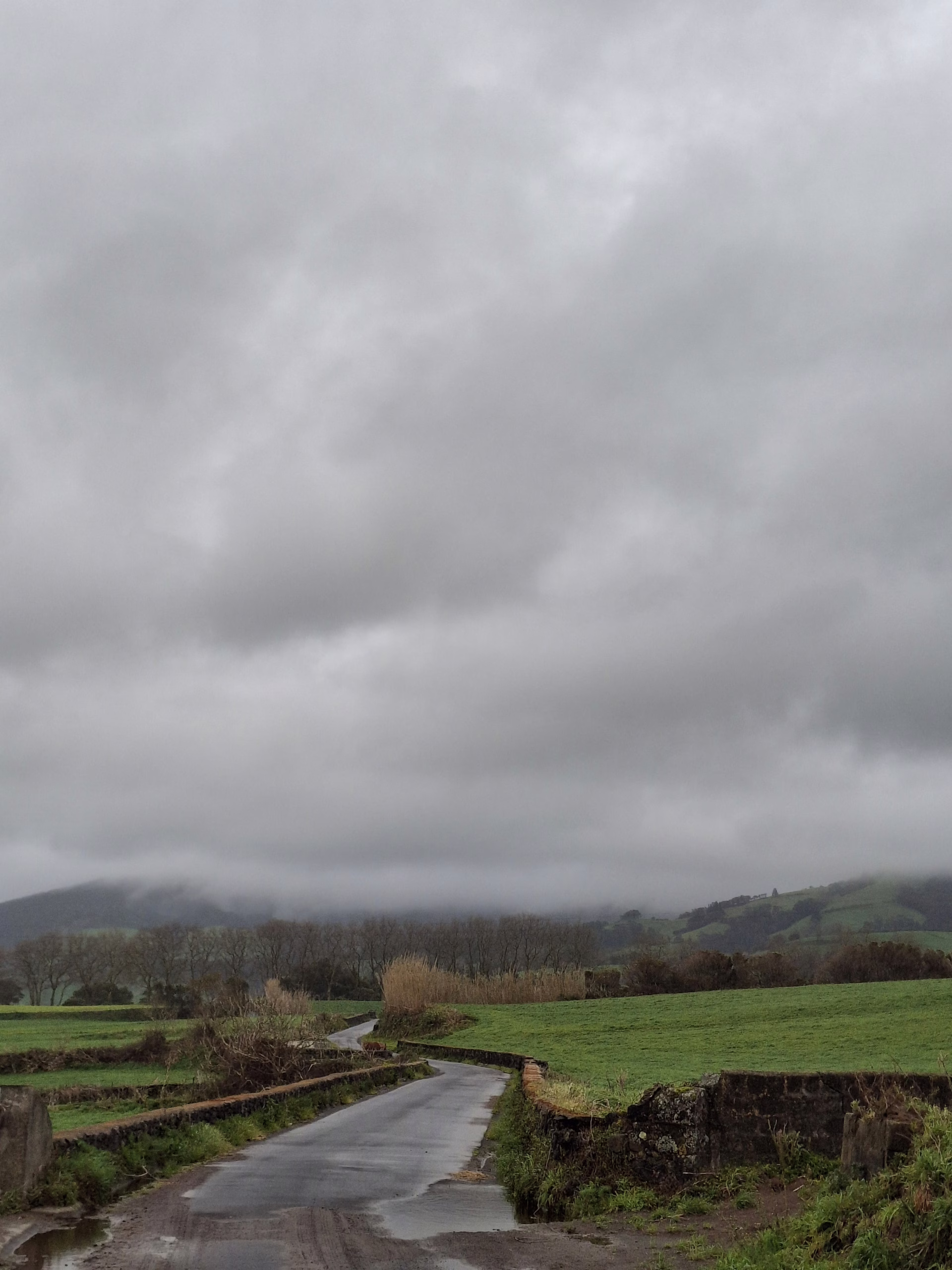 Náš čtyřkolý přítel nás dovezl spolehlivě na začátek cesty. Na malé parkoviště u vesničky Caldeiras, do které se ještě vrátíme v závěru našeho výšlapu. Čeká nás příjemná trasa, která je součástí cesty vody. Rota da Água. Zastavuji motor a spouští se klasický azorský déšť. Není to prudký liják, zato velmi vydatný. Minutu s klientkou (říkejme jí třeba Petra) debatuji, že tohle je na Azorských ostrovech klasika, že za pár minut bude všechno jinak, než mi sluníčko dalo za pravdu.